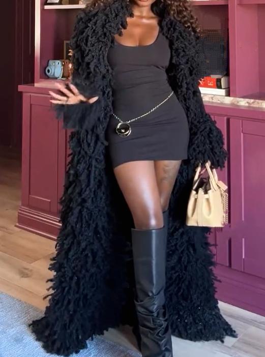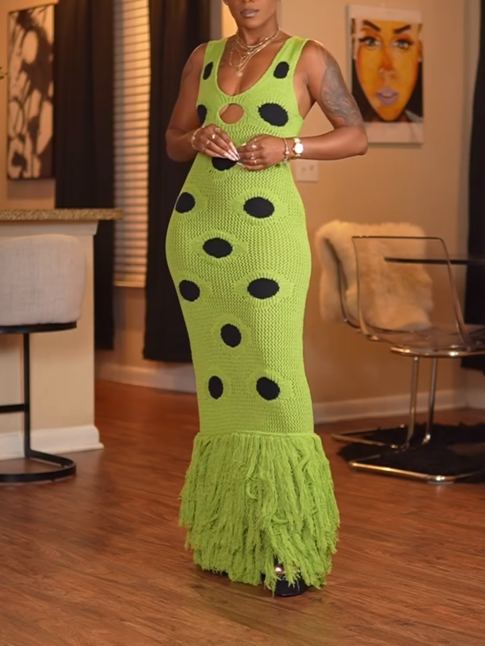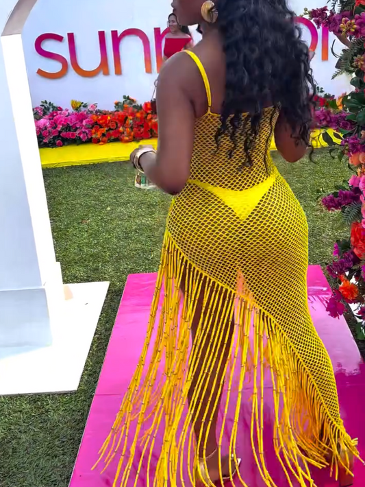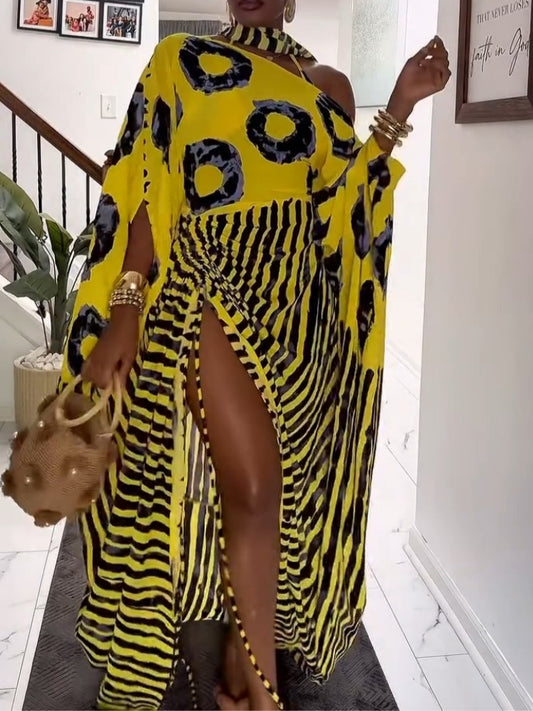Bright Yellow And Black Abstract Print Kaftan Maxi Dress