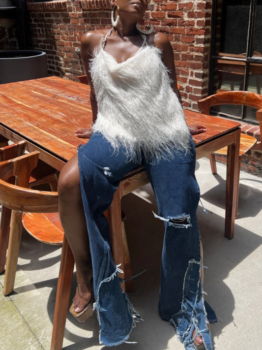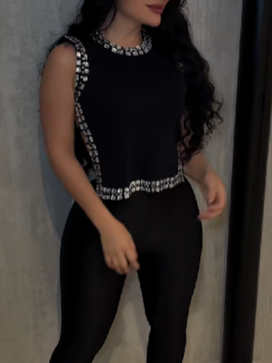 Sold outOpen-Back Tether Diamond-Trimmed Top