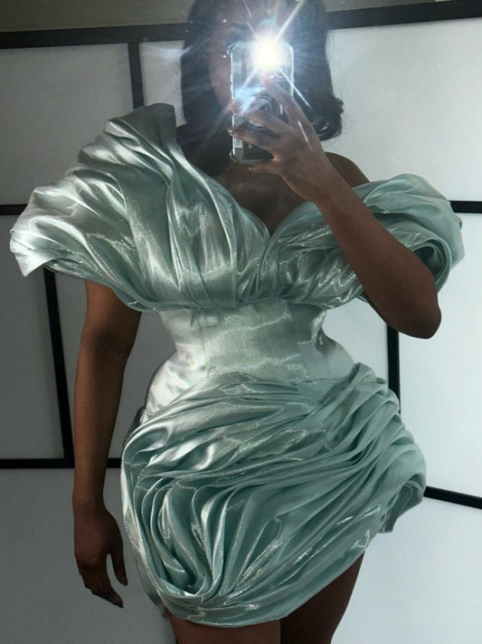 Elegant Satin Off-Shoulder Ruched Cocktail Mini Dress